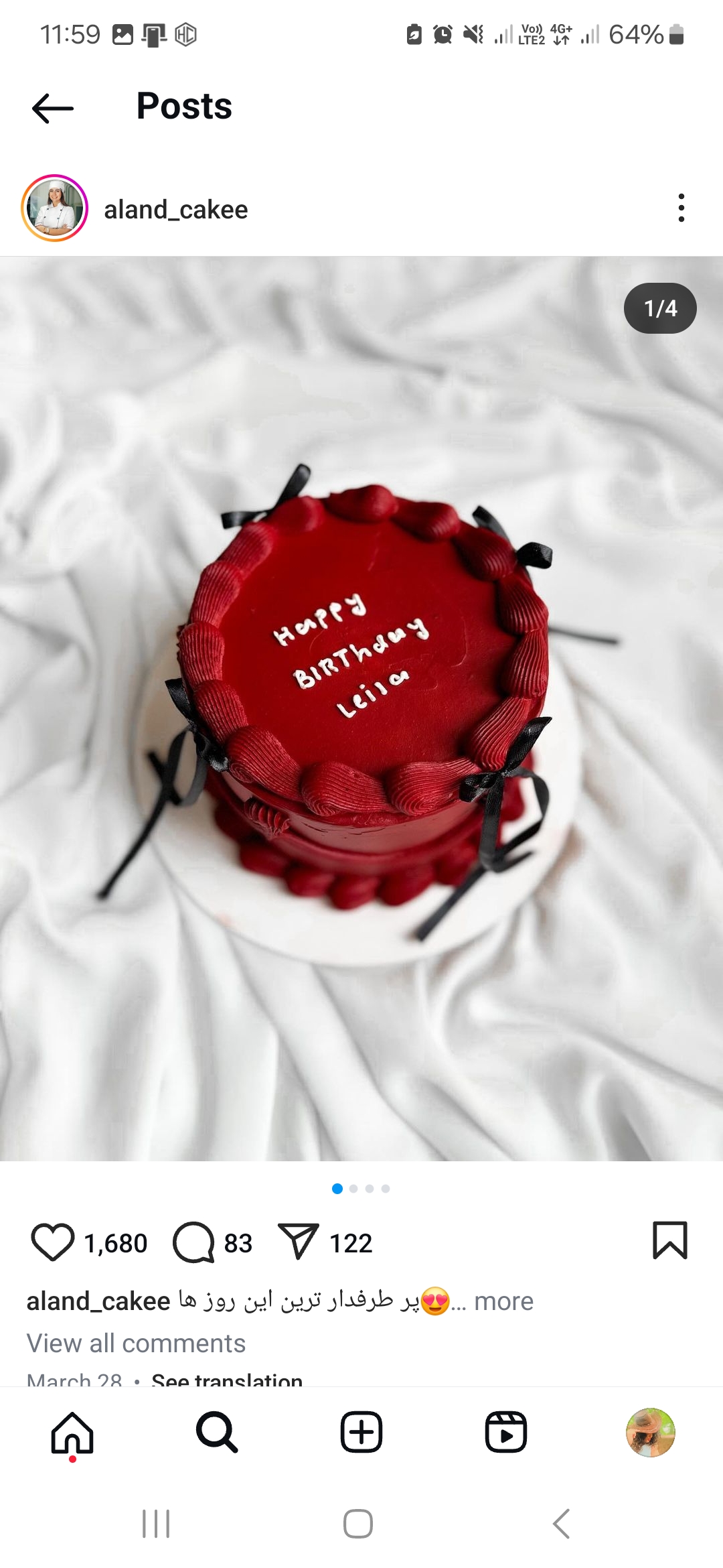 جزئیات سفارش کیک