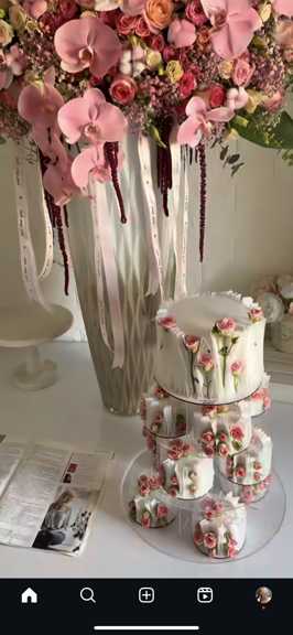 كيك گرد بالايي٣ كيلو و كلا ٩ تا كيك كوچيك تو طبقات پايين ماكت باشه گل هايي كه كار ميشه هم تركيب سفيد و آبي باشه